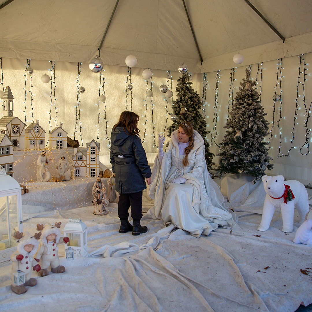 Nella piazza del mercato è allestita la “Casa di Babbo Natale”, non lontano dalla quale c’è la dimora degli “Elfi”. Proprio qui i bambini vivono il loro momento magico, ed in attesa di vedere realizzati i più desiderati sogni, si avvicinano stupiti per consegnare la lettera al segretario di Babbo Natale, il quale, sempre presente, è pronto ad ascoltare ed accogliere i loro desideri.